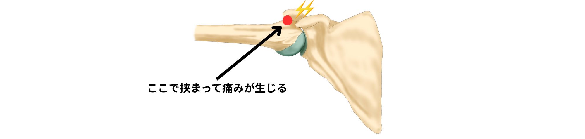 肩を動かしたり腕を上げた際に腱板、靭帯、関節包などの軟部組織が骨の隙間に挟み込まれる事で痛みを発する疾患です。