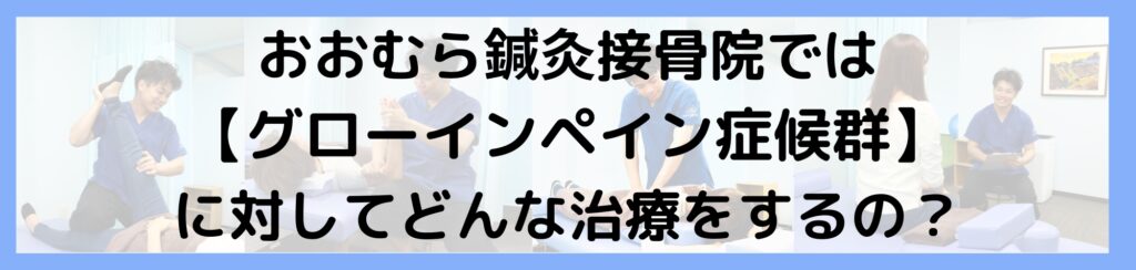 おおむら鍼灸接骨院では痛みを取る事だけではなく、グローインペイン症候群を発症してしまった原因を解消する事も患者様と一緒にしっかりと並走して改善に取り組んでいます。