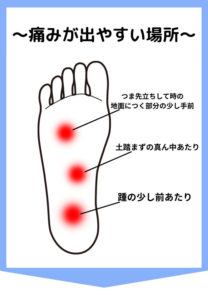 ・スポーツ開始時に足の宇浦に痛みが走る。